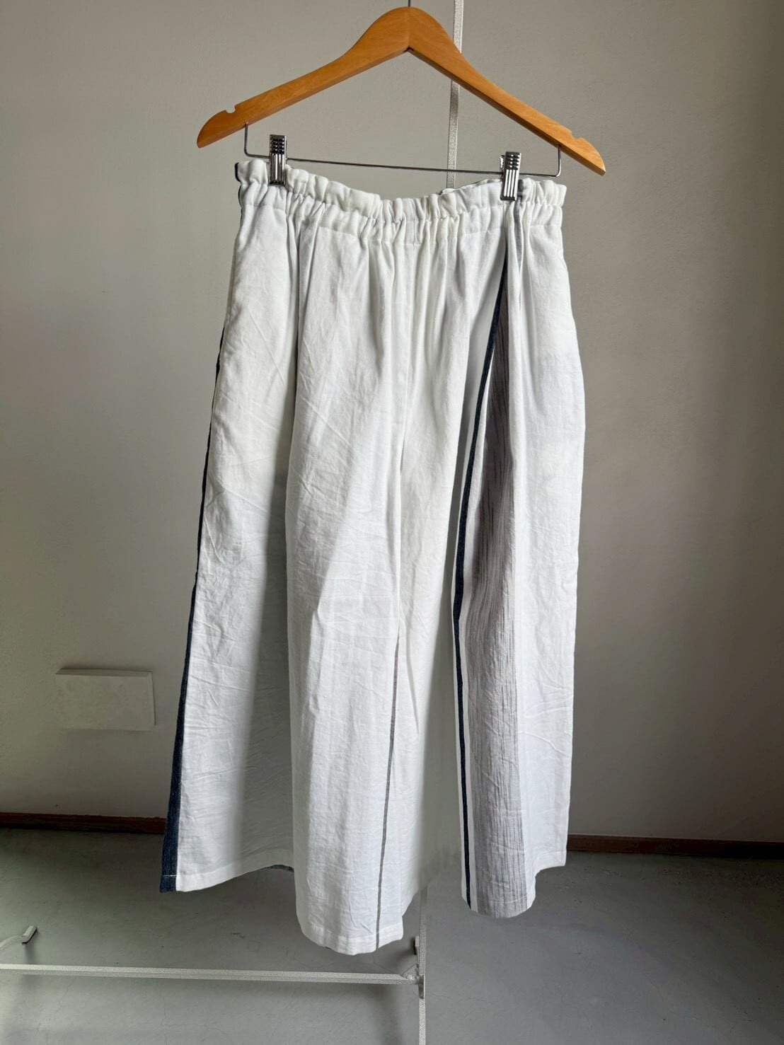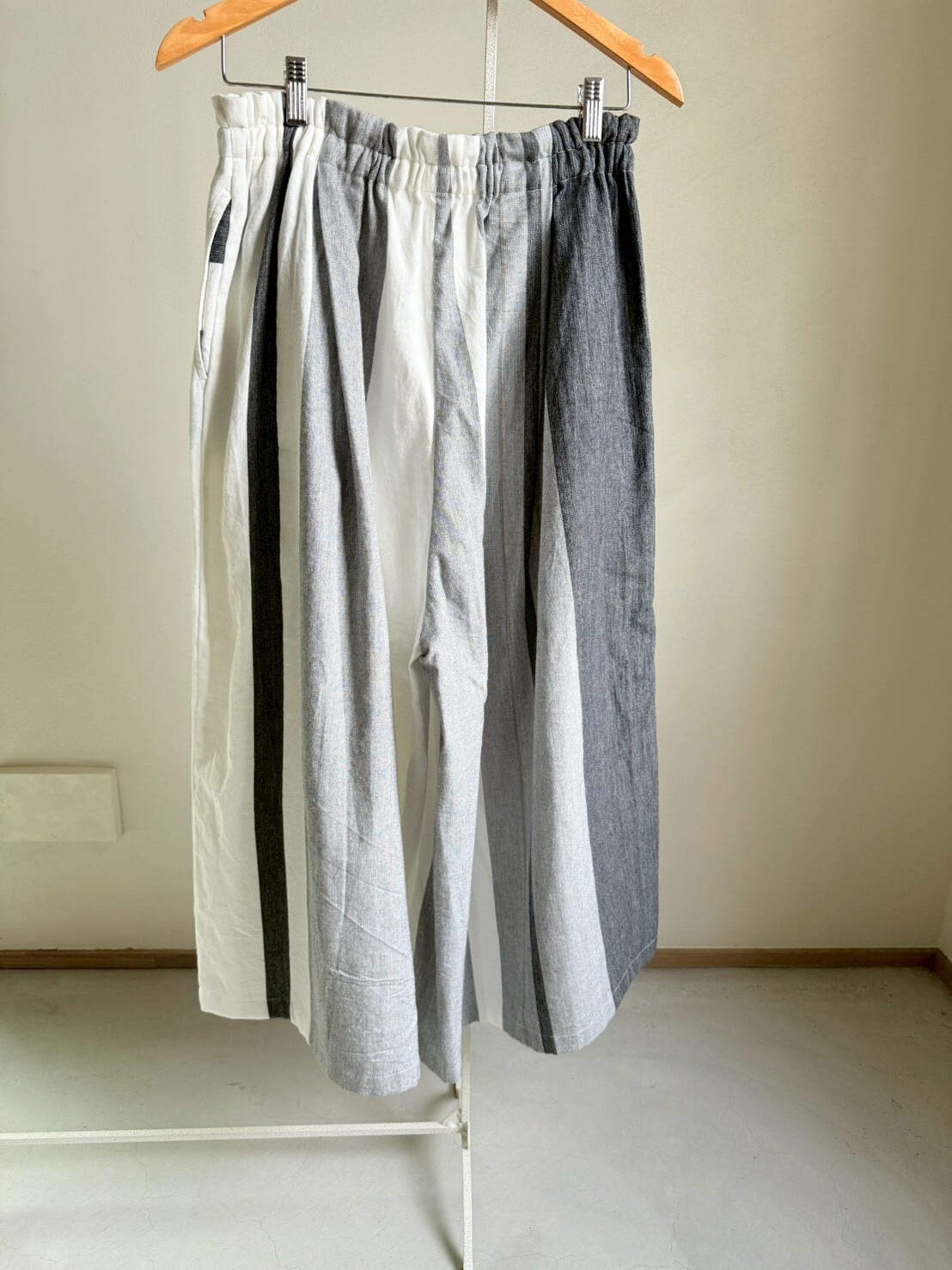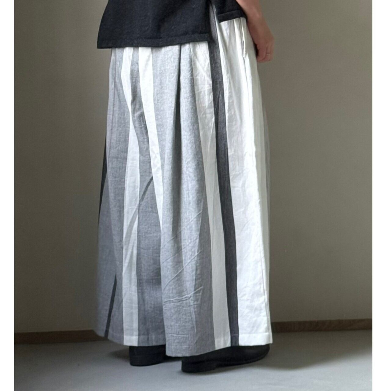 播州織デザイナー玉木新雌さんの1点もののワイドパンツ。