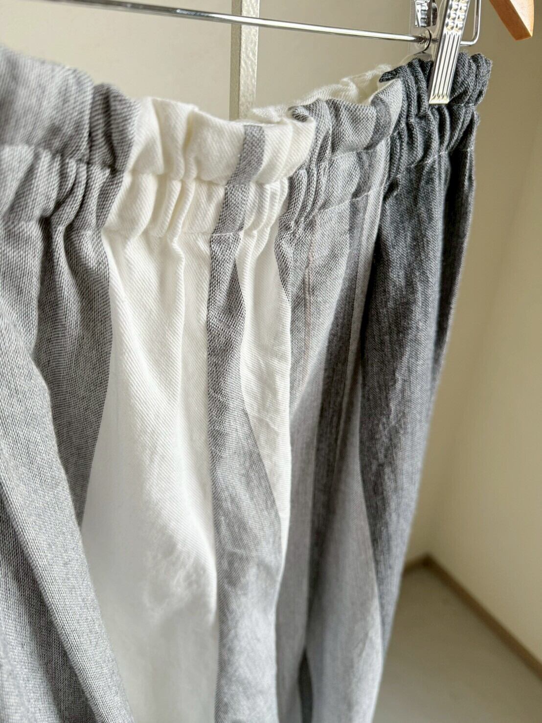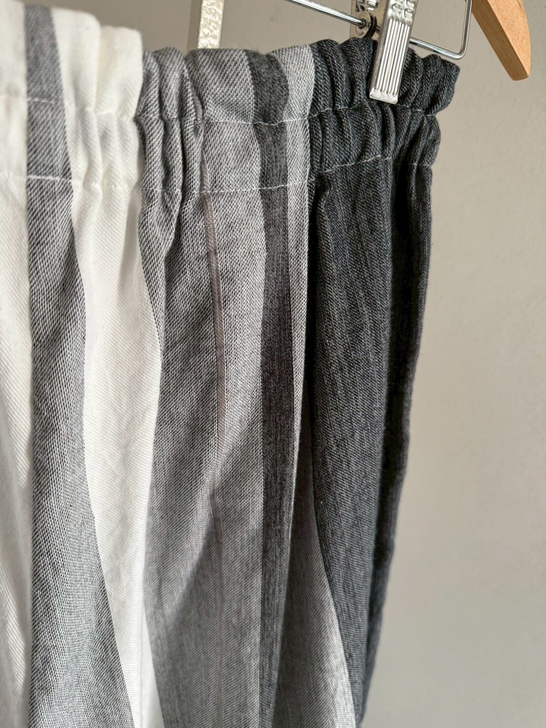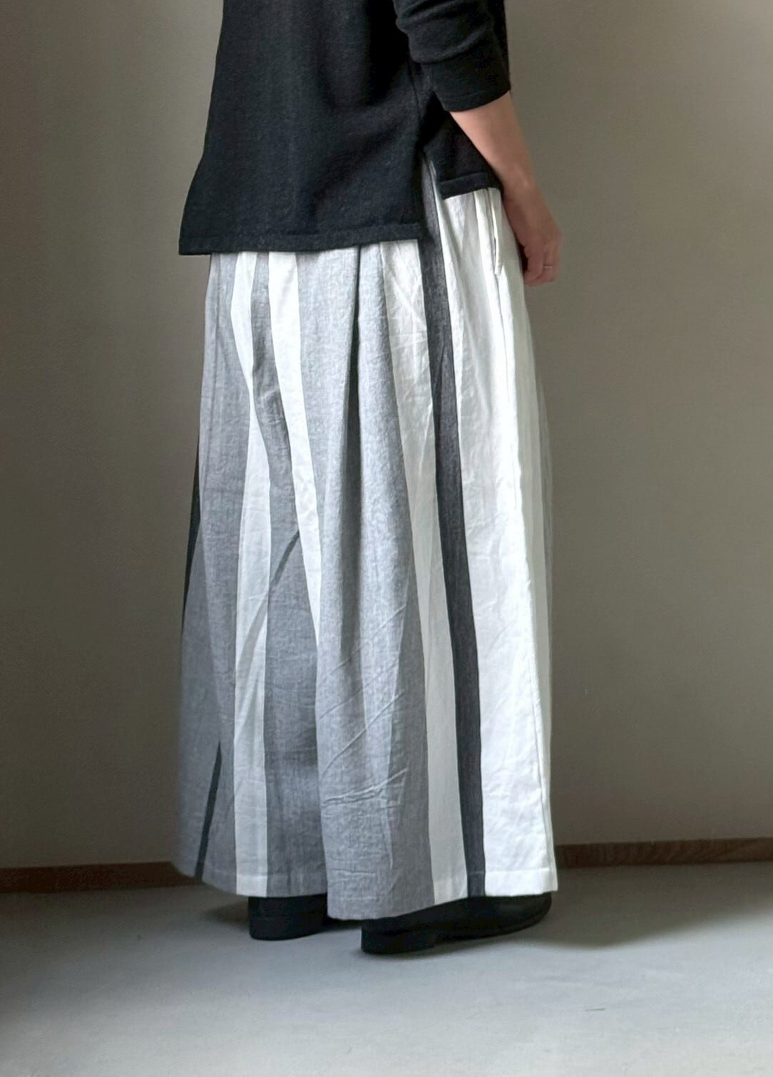 播州織デザイナー玉木新雌さんの1点もののワイドパンツ。