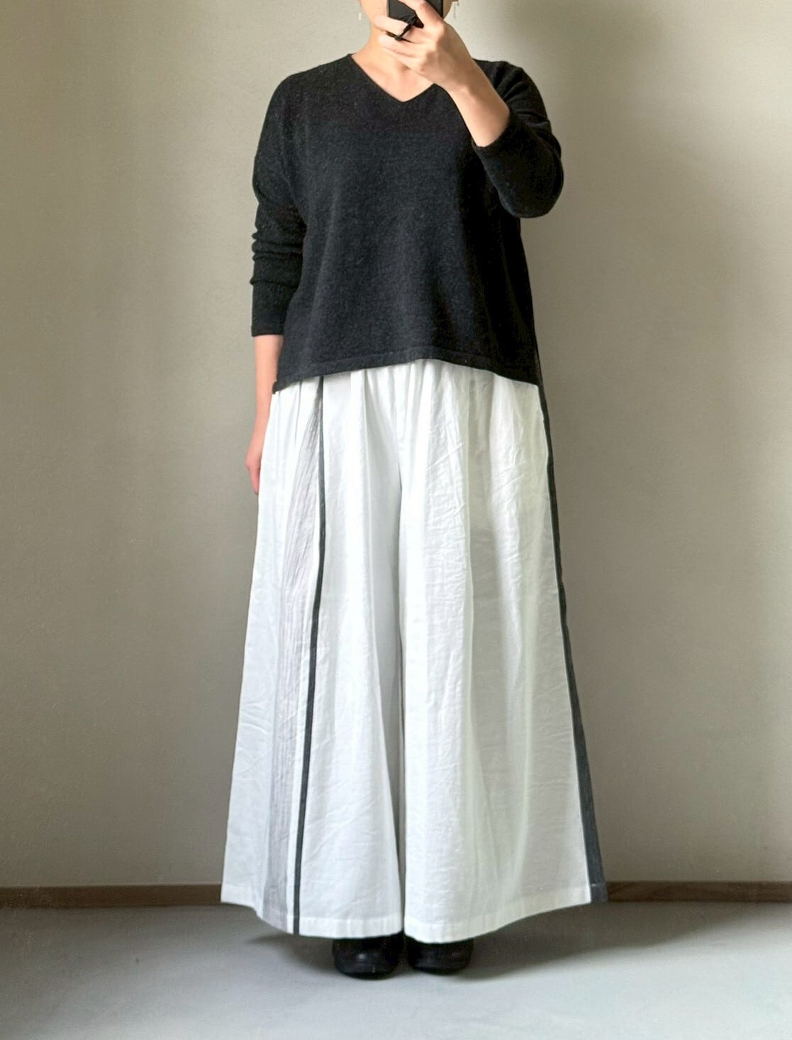 1) ワイドパンツ ロング ポケット コットン WH/GY● 玉木新雌 tamaki niime