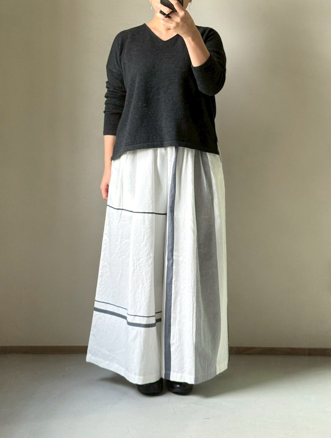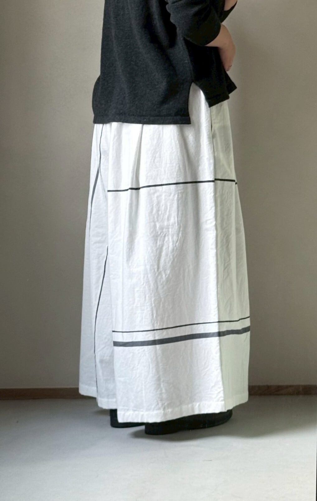4) ワイドパンツ ロング ポケット コットン WH/NV● 玉木新雌 tamaki niime