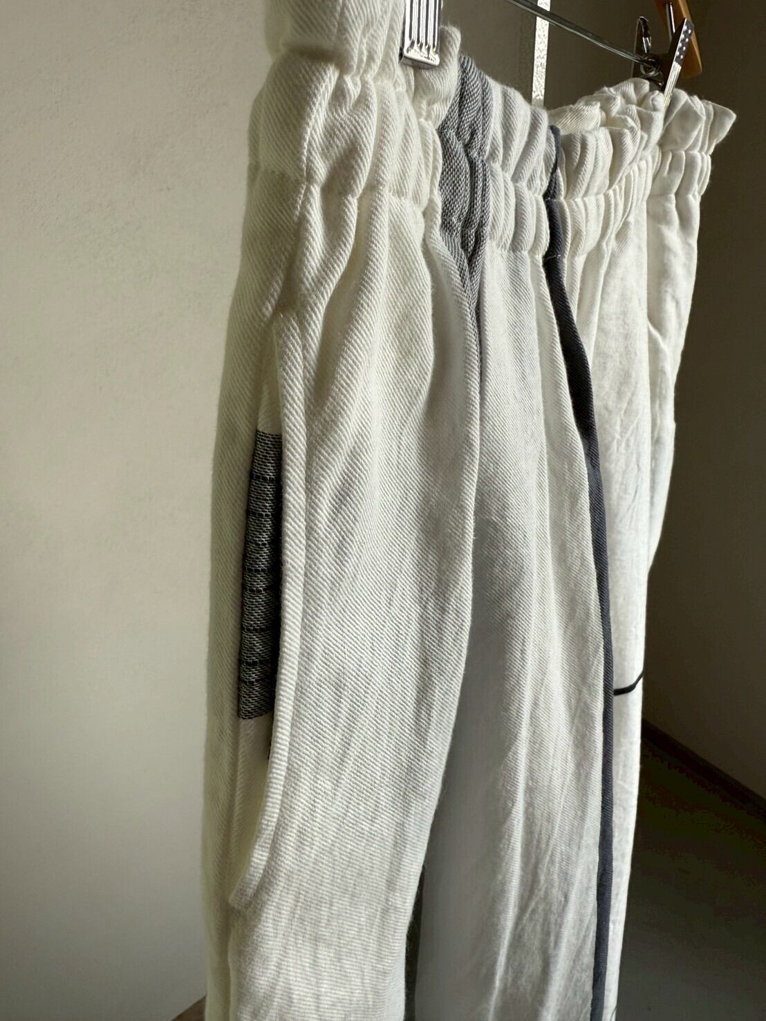 播州織デザイナー玉木新雌さんの1点もののワイドパンツ。