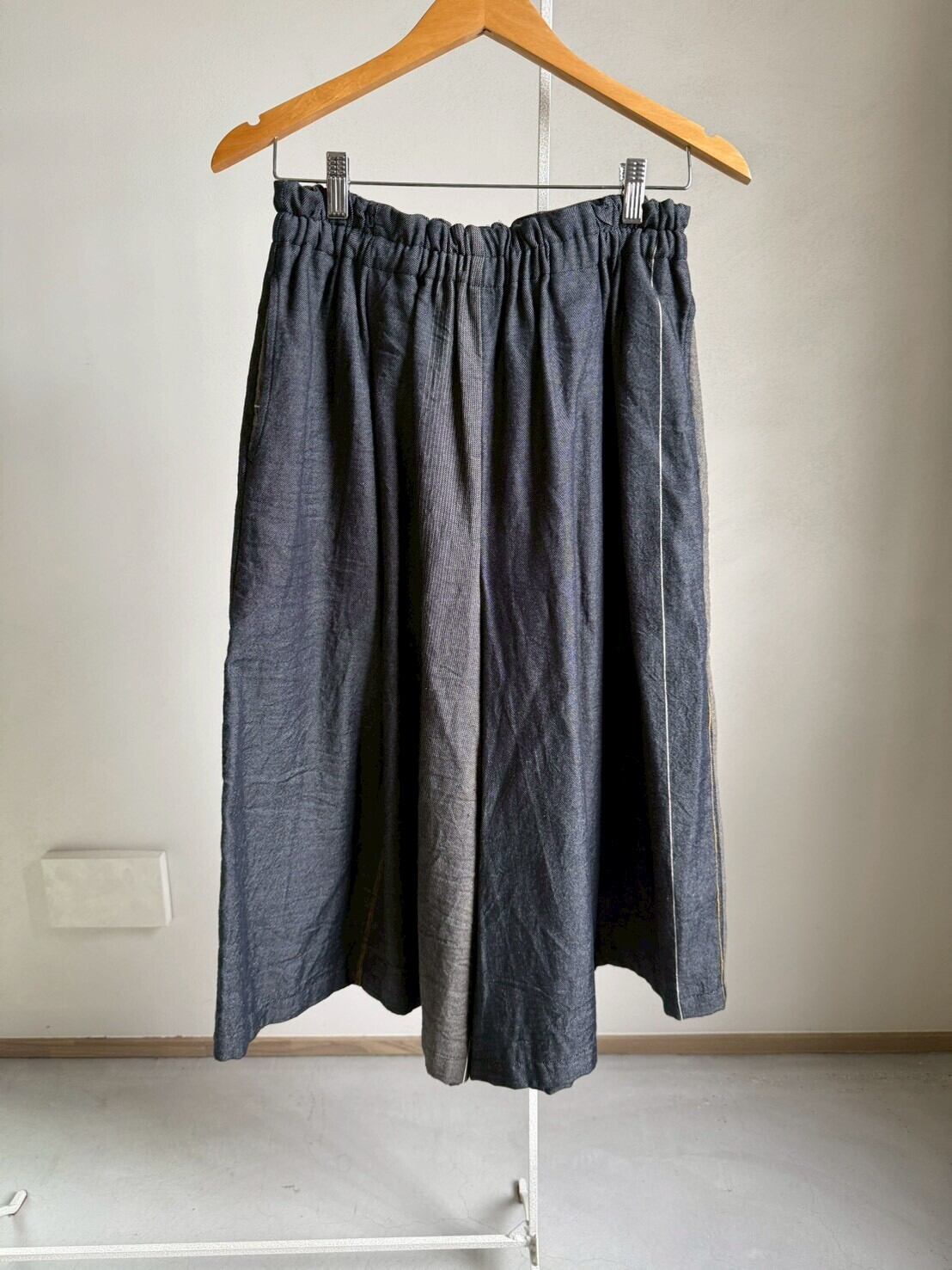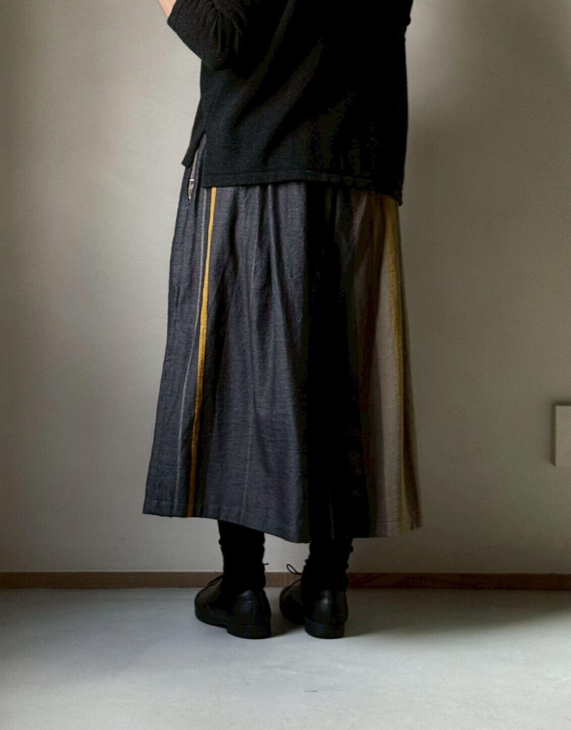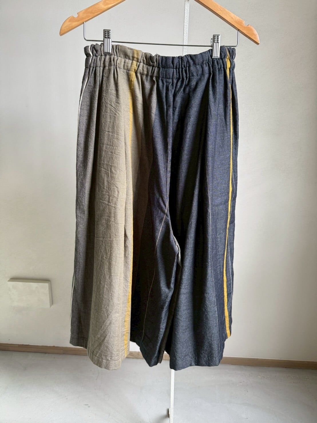 播州織デザイナー玉木新雌さんの1点もののワイドパンツ。