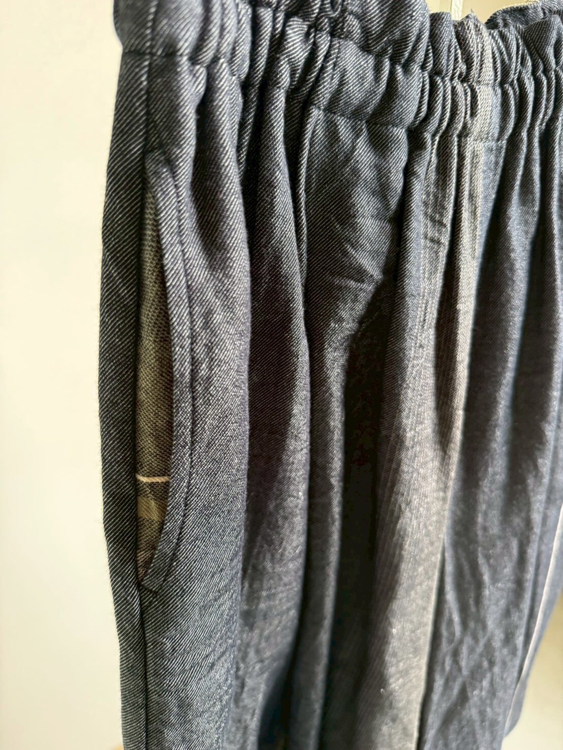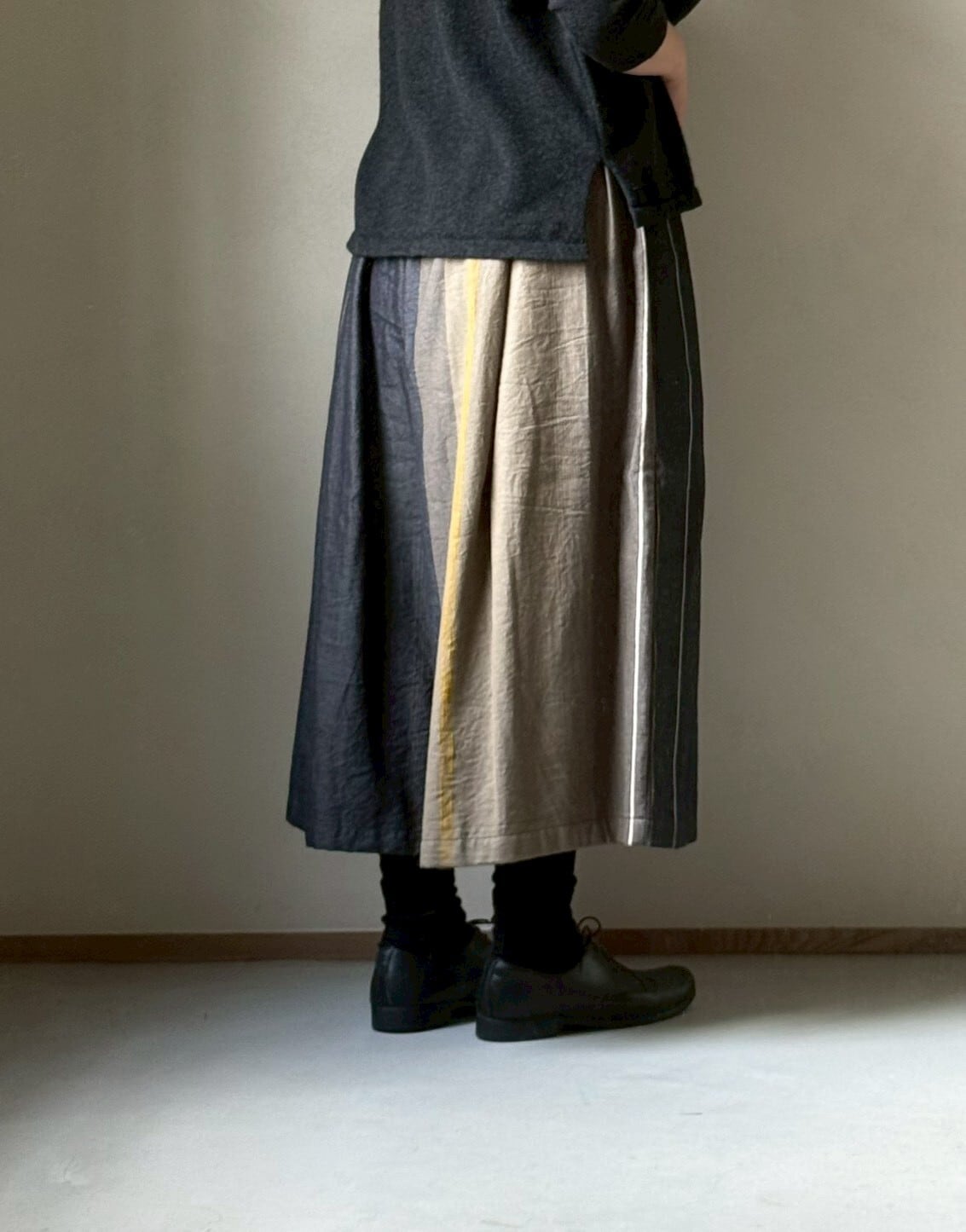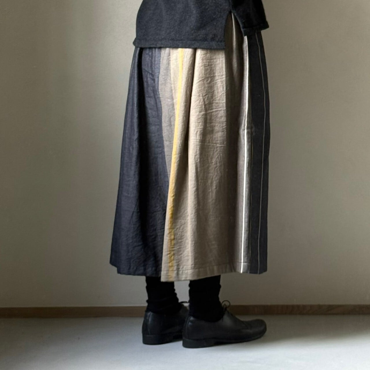 播州織デザイナー玉木新雌さんの1点もののワイドパンツ。