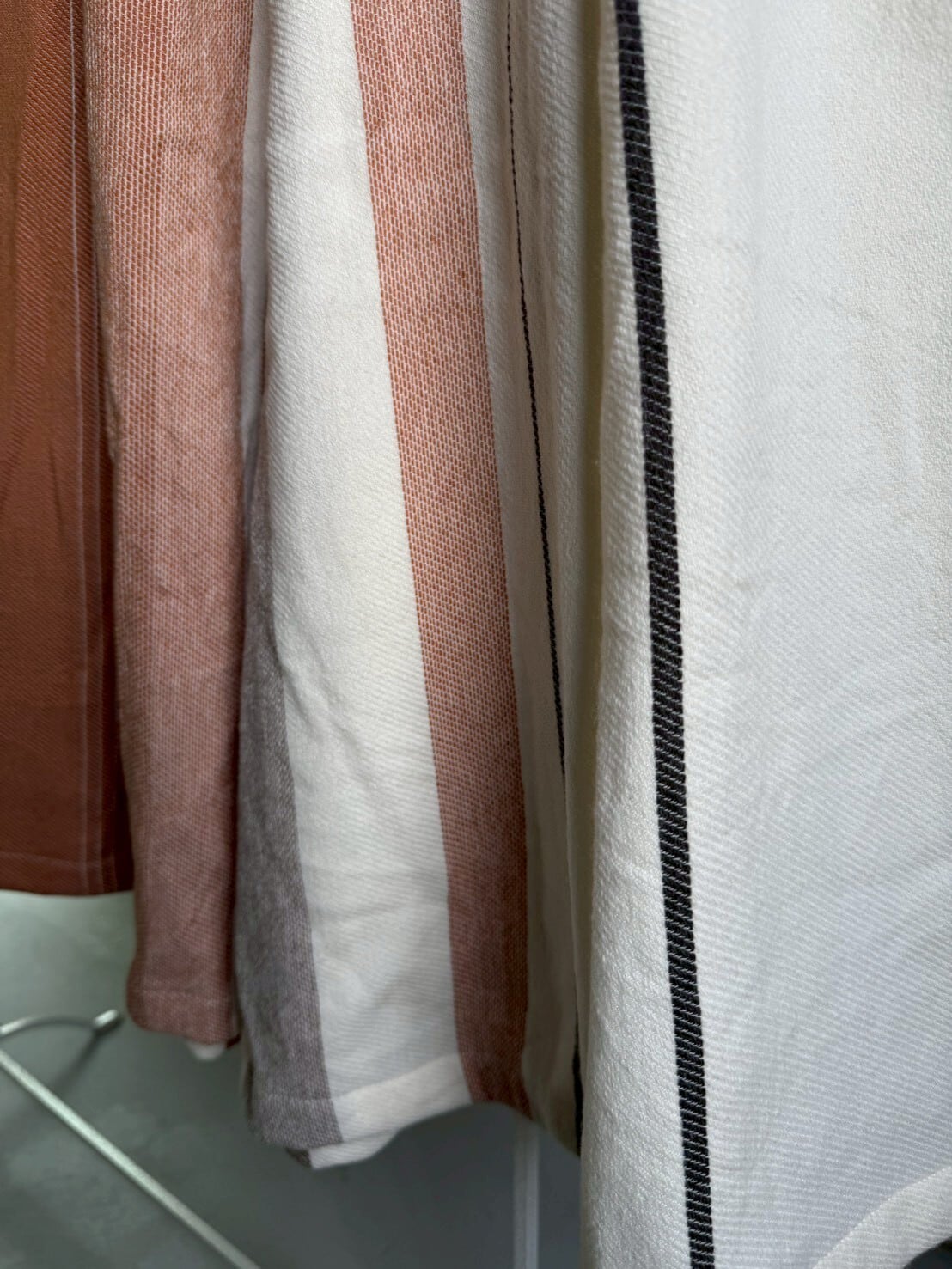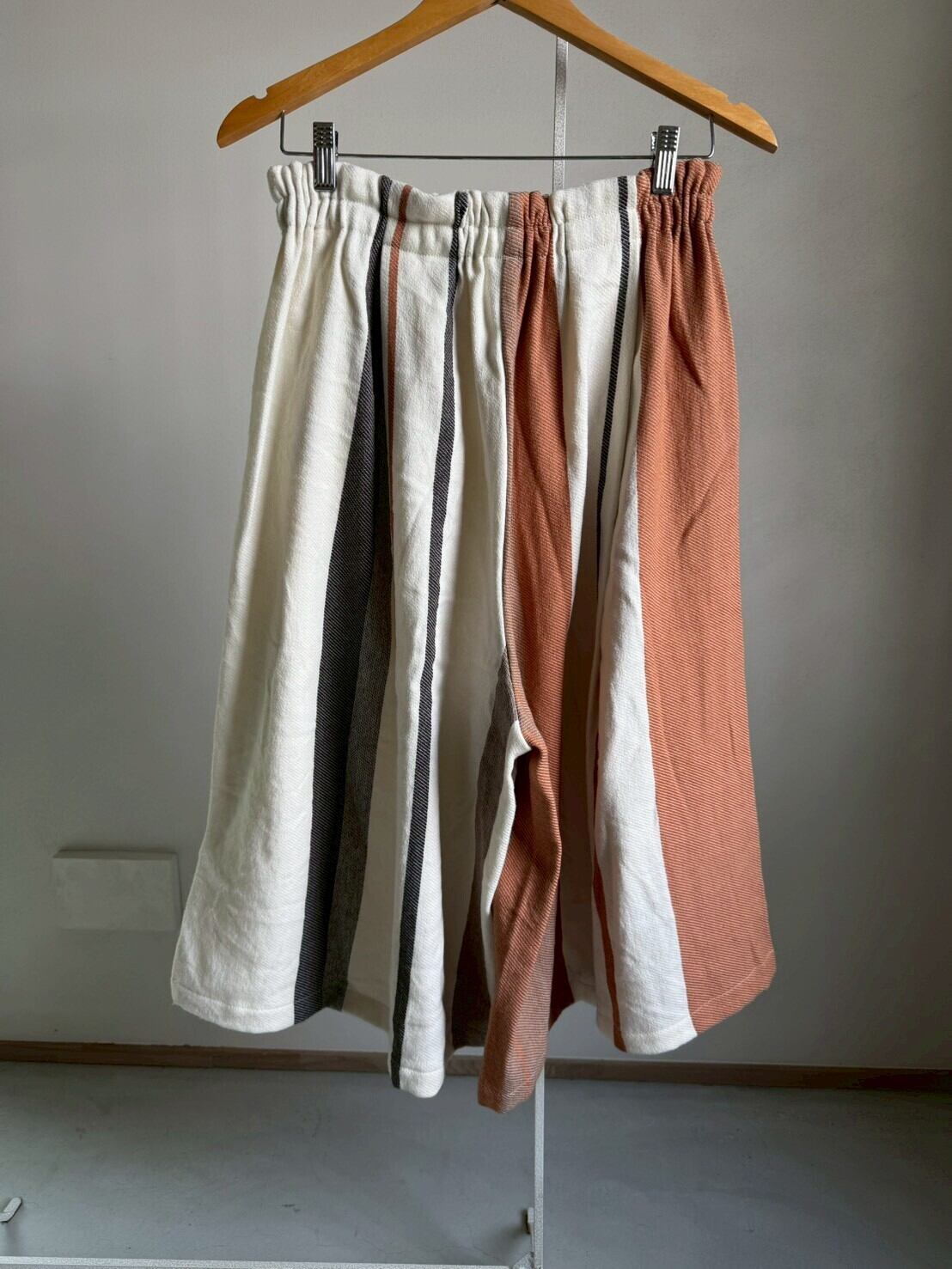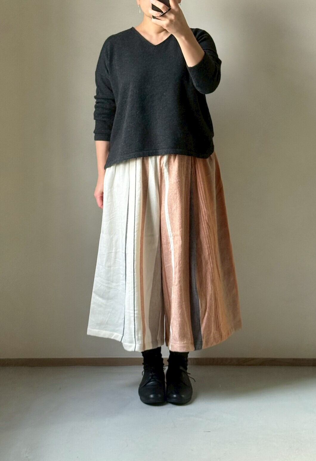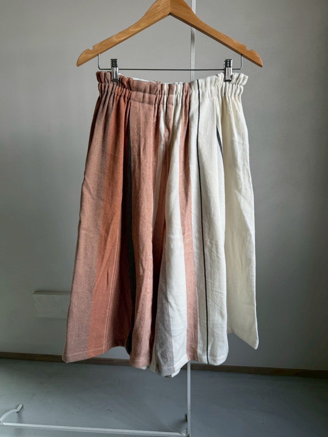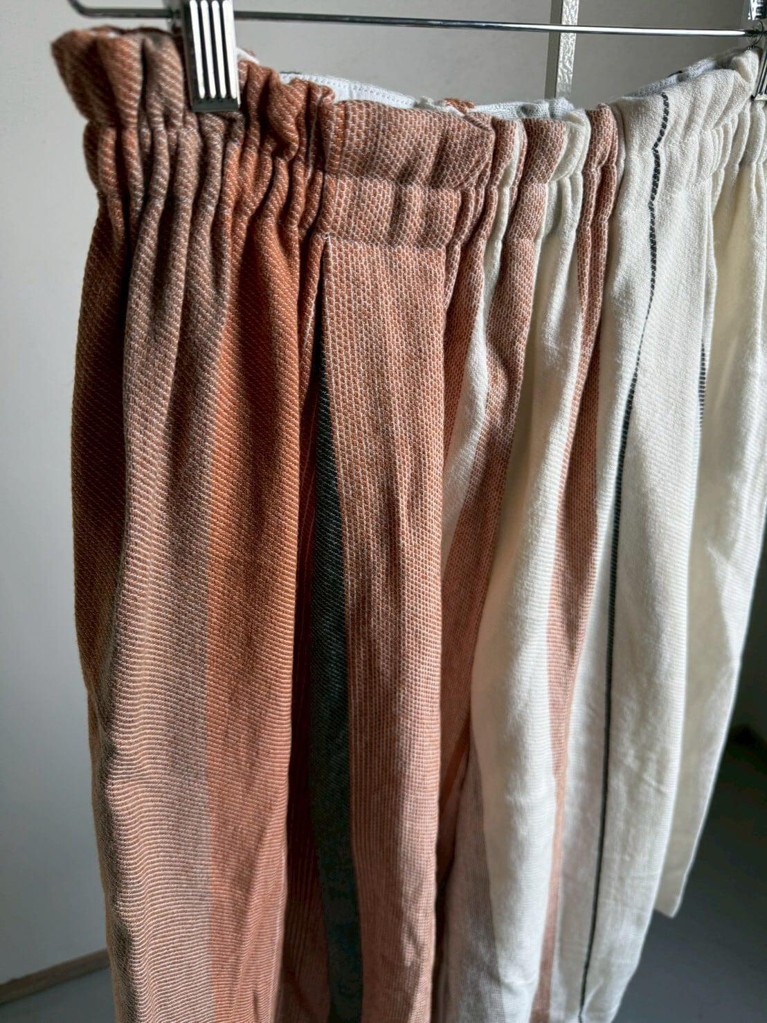 播州織デザイナー玉木新雌さんの一点もののワイドパンツ。
