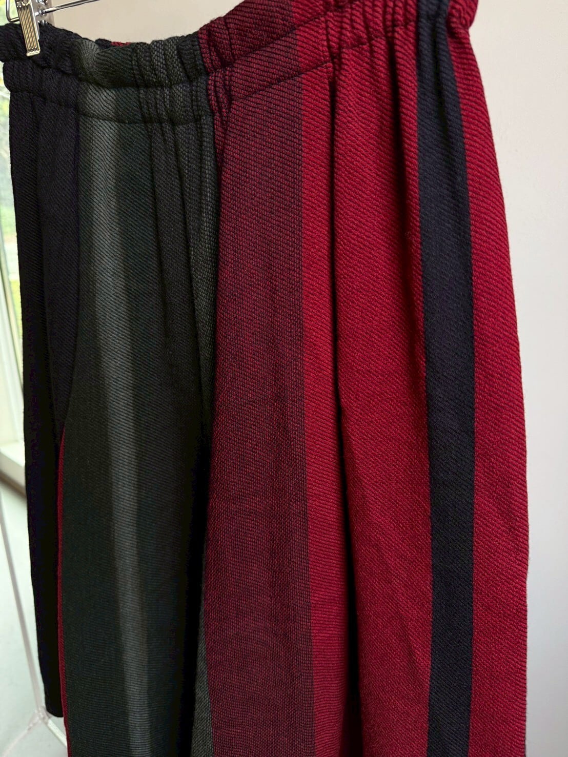 播州織デザイナー玉木新雌さんの一点もののワイドパンツ。