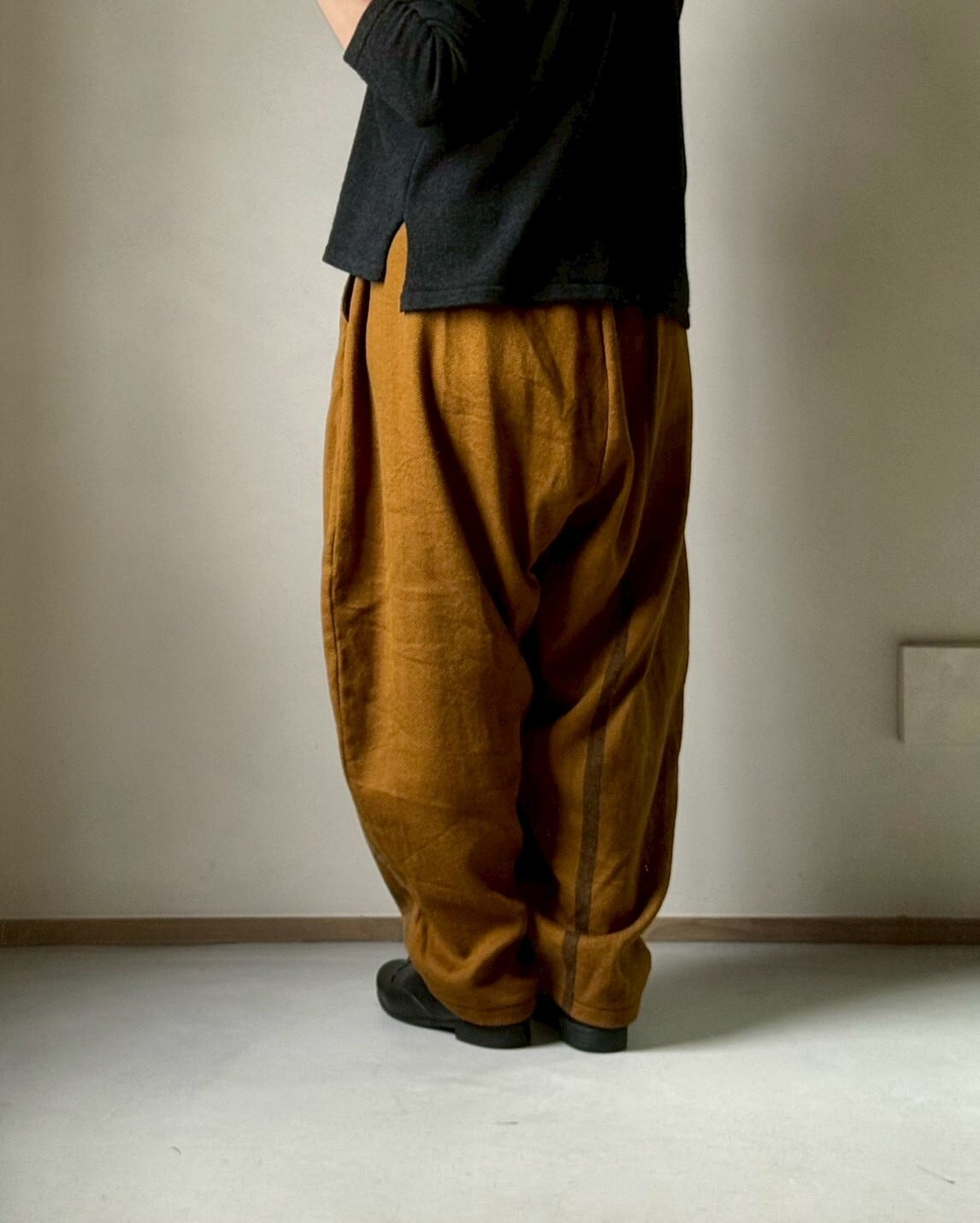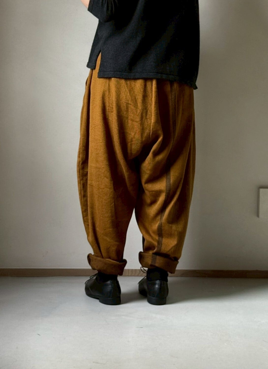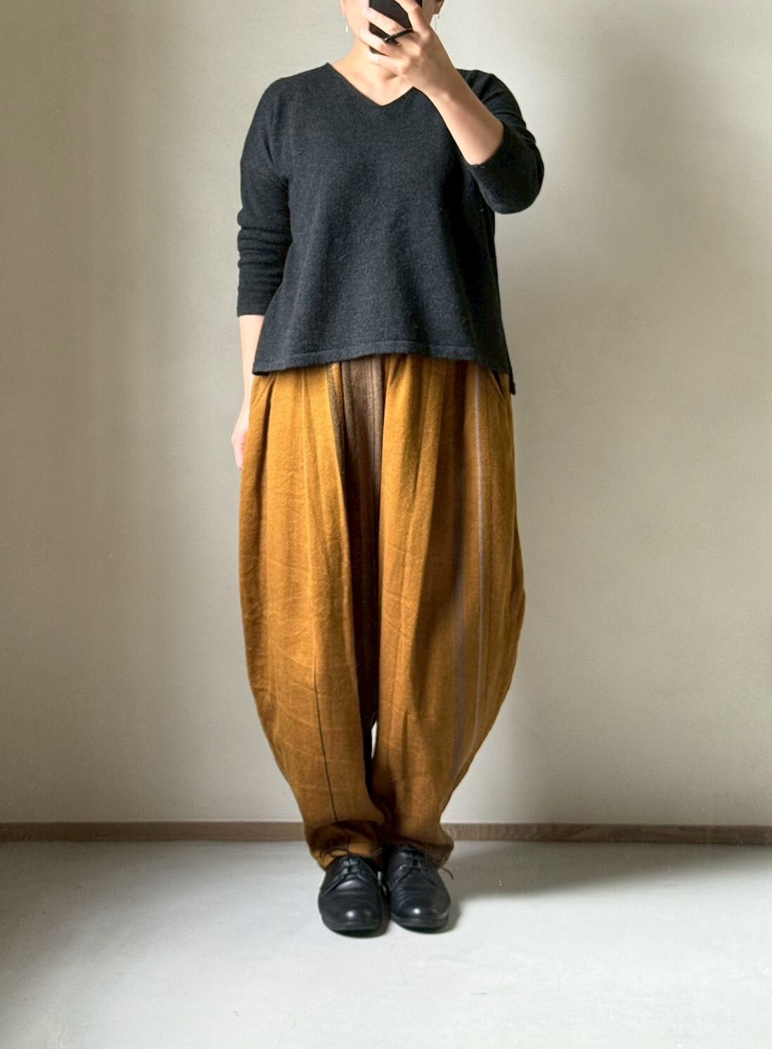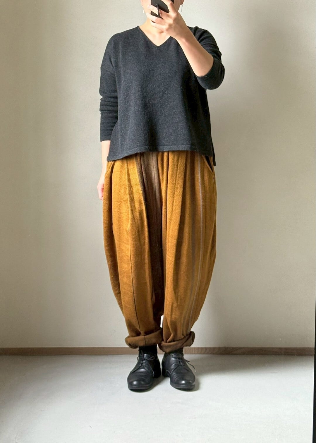 お尻まわりから膝までとってもゆったりで、裾が細くなるデザイン。
