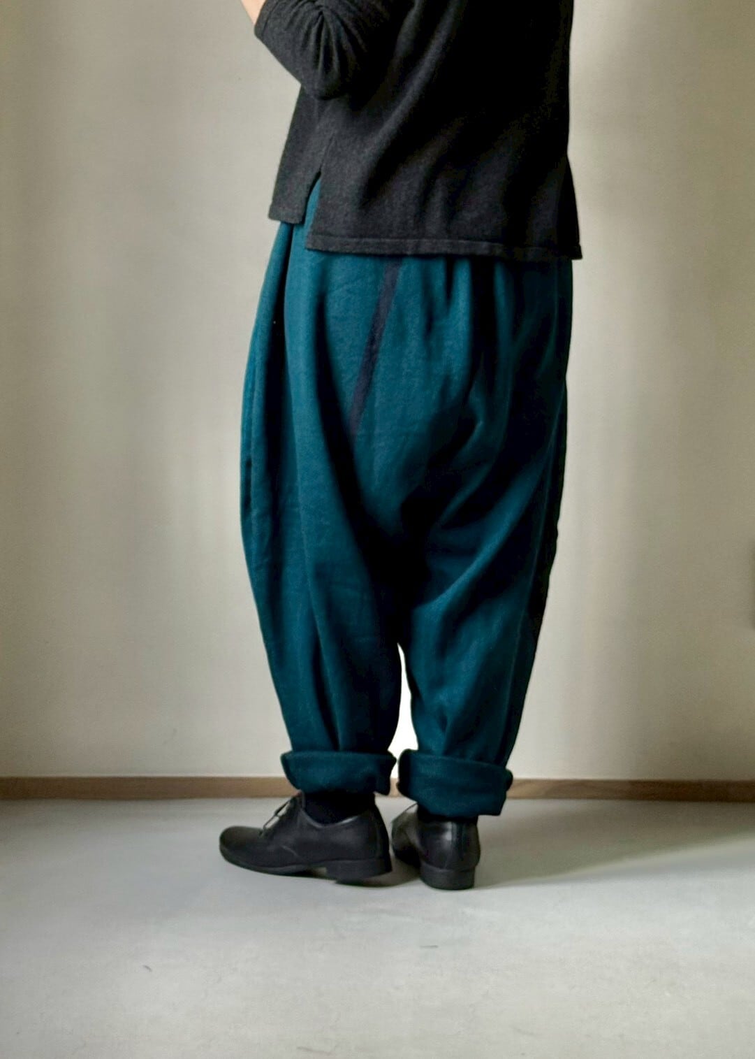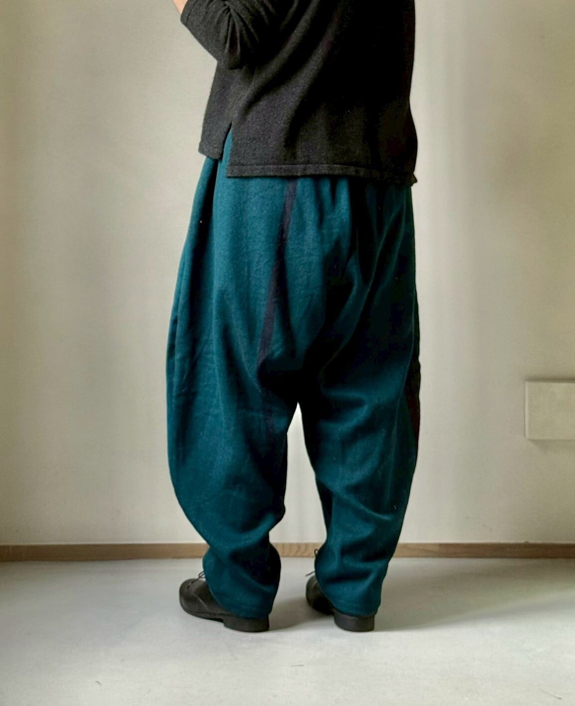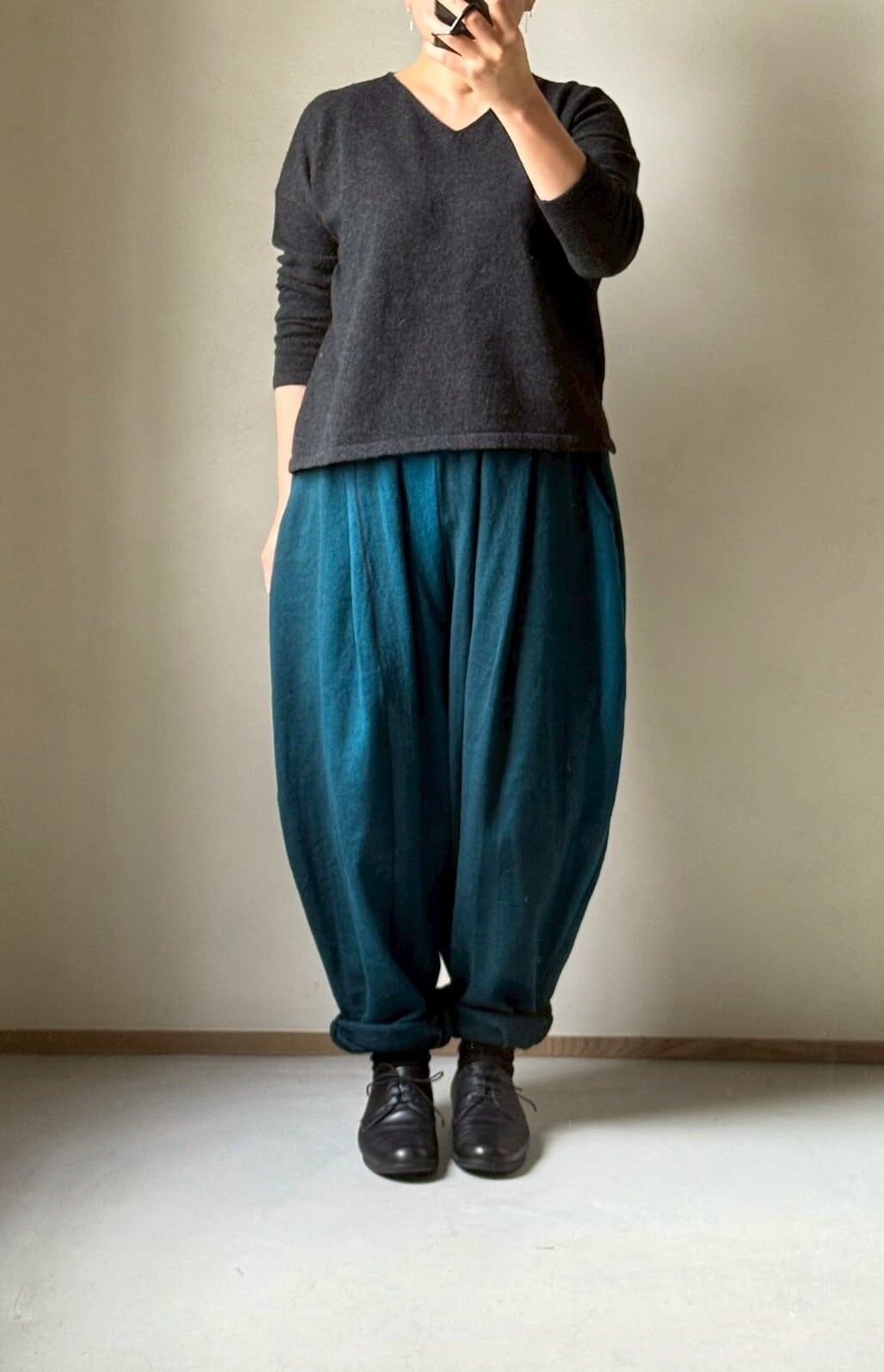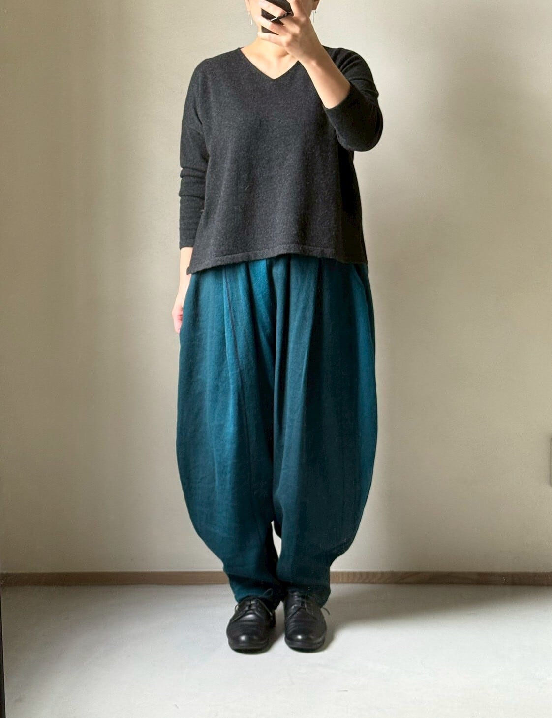 お尻まわりから膝までとってもゆったりで、裾が細くなるデザイン。